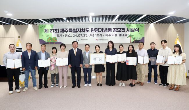제주특별자치도와 도 관광협회는 25일 오전 10시 제주도청 본관 2층 삼다홀에서 ‘제27회 제주특별자치도 관광기념품 공모전 시상식’을 개최했다.
