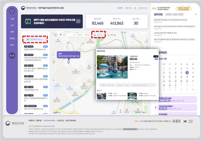 • 어린이놀이시설 안전관리시스템으로 놀이터 물놀이시설 안전정보 제공