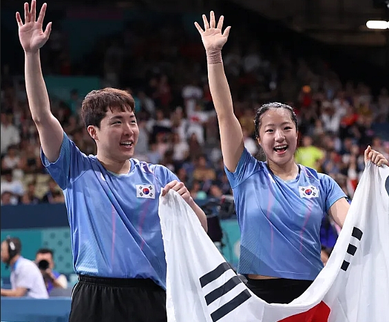 2024 파리 올림픽 탁구 혼합복식에서 한 조를 이룬 임종훈과 신유빈이 30일 프랑스 파리 사우스 파리 아레나에서 열린 동메달 결정전에서 홍콩의 웡춘팅-두호이켐 조를 꺾고 동메달을 차지했다.