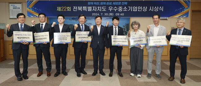 전북특별자치도는 30일 전북특별자치도청에서 우수중소기업인 8명에게 공로패와 인증현판을 수여했다.