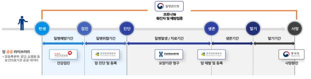 K-CURE 암 공공 라이브러리는 공공기관이 보유한 우리나라 암 환자의 등록, 검진, 의료이용 및 사망 데이터를 개인이 식별되지 않도록 안전하게 가명 처리하여 연구에 활용할 수 있도록 설계된 암 빅데이터로*, 이번에 해당 데이터의 기간과 종류가 확대되었다.