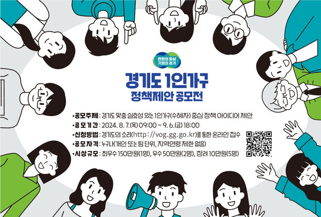 경기도가 9월 6일까지 1인가구를 위한 정책 아이디어를 제안받는 ‘경기도 1인가구 정책제안 공모전’을 개최한다.