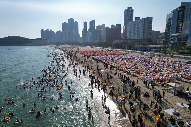 불볕더위에 부산 해수욕장에 피서 인파
