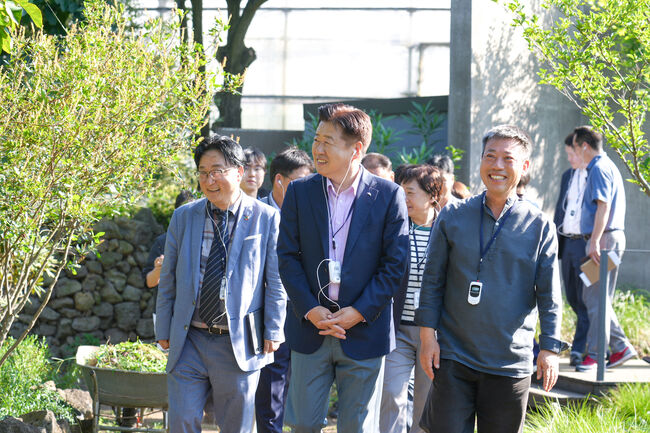 오영훈 지사는 12일 오후 서귀포시 효돈동에 위치한 도내 대표 민간정원인 베케*정원을 찾아 정원산업 관계자들과 민간정원 활성화를 위한 다양한 방안을 논의했다.