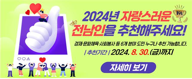 전라남도는 오는 30일까지 ‘2024년 자랑스러운 전남인’ 수상 대상자를 추천받는다고 밝혔다.