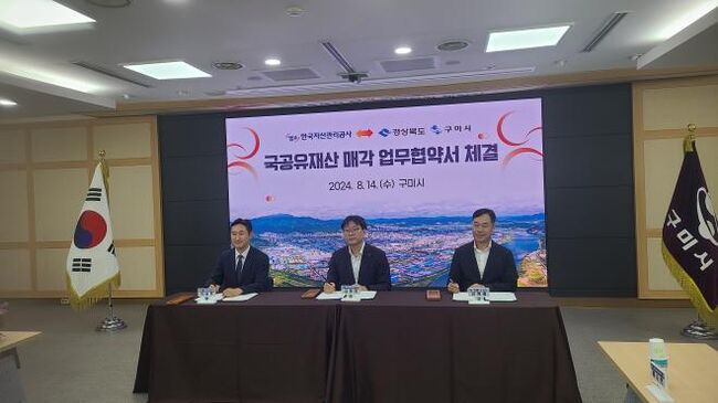 경상북도, 구미시, 그리고 한국자산관리공사(캠코)는 14일 구미시청 대회의실에서 유휴․저활용 국․공유재산을 효율적으로 매각하기 위해 공유지분권 일괄 매각 업무협약을 체결했다.이날 협약식에는 이남억 경상북도 공항투자본부장, 김영철 구미시 경제국장, 김원대 캠코 대구경북지역본부장 등이 참석하였으며 유휴․저활용 국·공유재산의 활용도를 높이고 지역경제 활성화에 이바지하기 위해 마련됐다.