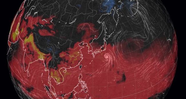 서울 지역 역대 최장기간 연속 열대야가 이어지는 등 처서를 앞두고 있지만 폭염이 이어지고 있다. 기상 정보 비주얼맵인 어스널스쿨로 확인한 오후 3시 한반도 주변의 불쾌지수가 붉게 표시되어 있다.(한겨레신문 보도)