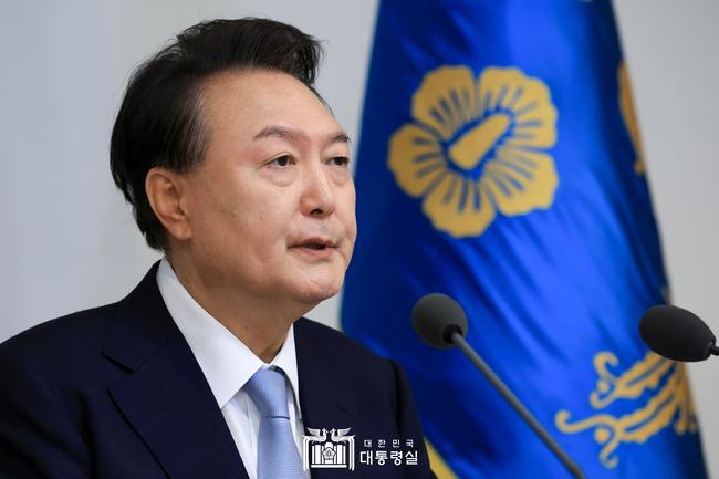 윤석열 대통령이 29일 용산 대통령실 집무실에서 국정브리핑을 하고 있다.