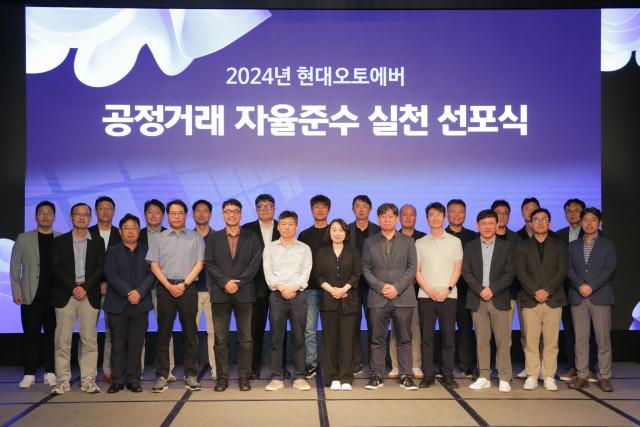 현대오토에버는 지난 3일 반얀트리 서울 호텔에서 ‘공정거래 자율준수 실천 선포식’을 개최했다. 현대오토에버의 전체 임원 20여 명이 참석한 이 행사에서 임원 일동은 공정거래 자율준수 실천의지 선포문을 공유하고, 자율준수 서약을 진행했다.