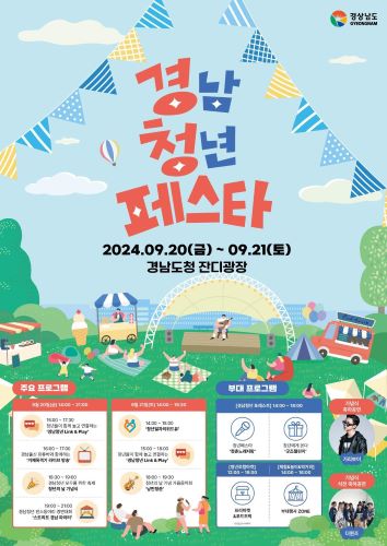 경상남도가 청년의 날을 맞아 20일부터 21일까지 양일간 경남도청 잔디광장에서 ‘2024 경남청년페스타’를 개최한다.