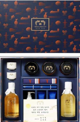 특히, 이번 선물에는 ‘K-뷰티’의 저력을 국민께 보여드리기 위해 전국 곳곳의 자연 소재를 활용한 화장품세트가 새로 포함됐다. 불교계 등을 위해서는 오미자청(경북 문경), 매실청(전남, 광양), 잣(강원 평창·홍천), 사과고추장(충북 보은), 배잼(울산 울주), 화장품 세트로 준비 했다.