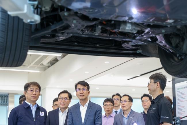 박상우 국토교통부 장관이 지난 8월 16일 오후 현대자동차의 서울 남부하이테크센터를 방문하여 `전기차 특별안전 점검` 진행상황을 살펴보고 있다.