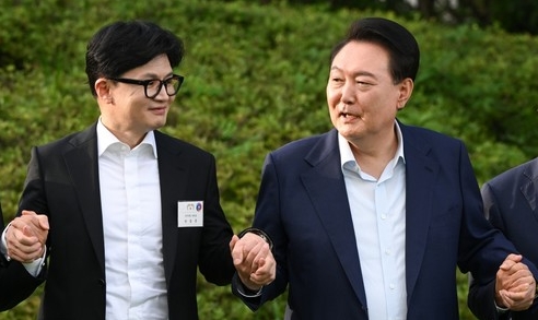 24일 윤석열 대통령과 한동훈 대표 등 국민의힘 지도부가 용산 대통령실에서 만찬을 할 예정이다. 윤 대통령과 한동훈 지도부 간 만찬은 지난 7월 24일 만찬에 이어 두 번째다. 한 대표가 대통령실에 요청한 윤 대통령과의 독대(獨對)는 이뤄지지 않을 전망이다.