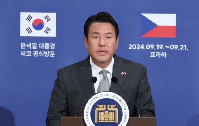 대통령실은 이날 입장문을 통해 “김 차장이 체코 순방 공식 환영식에서 애국가 연주 시 가슴에 손을 얹지 않은 이유는 우측 전방의 국기를 발견하지 못해 발생한 착오”라면서 이같이 밝혔다. 이어 “대한민국국기법 시행령 제20조 제1호에는 국기를 볼 수 있는 국민은 국기를 향해 경례를 하고, 국기를 볼 수 없고 연주만 들을 수 있는 국민은 그 방향을 향해 선 채로 차렷 자세를 취한다고 규정돼 있다”고 설명했다.