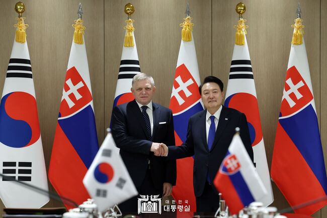윤석열 대통령은 9월 30일 한국을 공식 방문 중인 「로베르트 피초(Robert Fico)」 슬로바키아 총리와 정상회담을 갖고, 양국 간 협력 증진 방안과 지역 및 국제 정세에 대해 폭넓은 의견을 교환했다.
