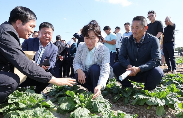 송미령 농림축산식품부 장관이 30일 배추값 안정을 위해 “10월 중 중국산 신선배추를 최대 1100t 수입하겠다”고 밝혔다.