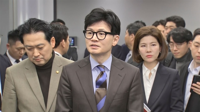 한 대표는 "이런 특검법이 통과되고 시행되면 사법질서가 흔들릴 것"이라며 "지금의 특검법은 부결시키는 것이 맞다고 생각하고, 당원들과 당 의원들께도 그런 설득을 드릴 생각"이라고 강조했다. 그러면서 그는 '특검법이 한 번 더 넘어오면 어떻게 하겠느냐'는 질문에는 "미리 얘기하지 않겠다"고 답했다.