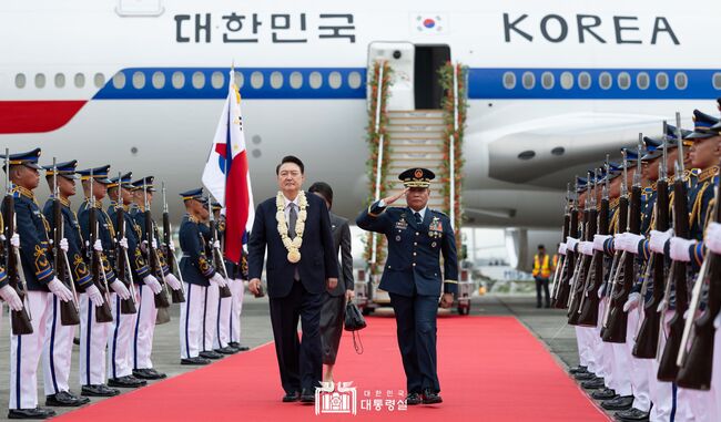 10월 6일 윤석열 대통령 부부는 필리핀 마닐라 공항에 도착했다