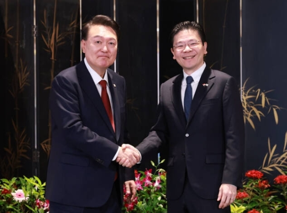 윤 대통령은 로런스 웡 싱가포르 총리와의 공동언론 발표에서 "내년 수교 50주년을 앞두고 아세안(ASEAN·동남아시아국가연합) 내 핵심 우방국인 싱가포르를 국빈 방문하게 돼 대단히 기쁘게 생각한다"며 "싱가포르와 한국은 1975년 외교관계를 수립한 이후 반세기에 걸쳐 우호 협력 관계를 꾸준히 발전시켜 왔다"고 밝혔다.