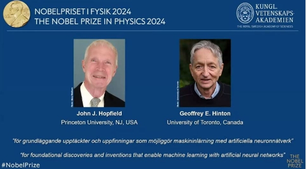 스웨덴 왕립과학원 노벨위원회는 8일(현지시간) 존 홉필드 미국 프린스턴대 교수와 제프리 힌튼 캐나다 토론토대 교수를 올해 노벨물리학상 공동 수상자로 선정했다고 발표했다. 이들은 인공 신경망으로 머신러닝을 가능하게 하는 기초 연구를 한 공로를 인정받았다.