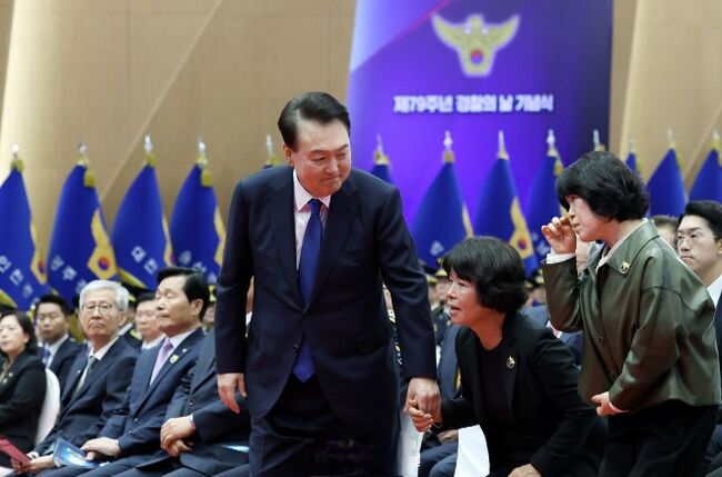 윤 대통령은 또 “우리 경찰의 치안 역량은 국제사회에서도 인정받고 있다”면서 급증하는 초국경, 디지털 범죄에 맞서 역대 가장 많은 국외 도피 사범을 송환하는 성과를 거둔 점 등을 치하하고, 치안 한류를 선도하고 있는 경찰의 발전을 응원했다.
