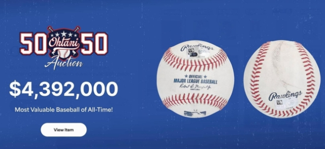 미국프로야구 메이저리그(MLB) 최초 ‘50홈런·50도루’ 기록을 세운 ‘슈퍼스타’ 오타니 쇼헤이(LA다저스)의 50번째 홈런 공이 경매에서 사상 최고가에 낙찰됐다.