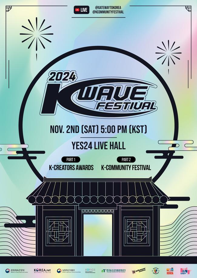 문화체육관광부는 11월 2일(토), 예스24 라이브홀에서 ‘2024 한국문화 큰잔치(2024 K-Wave Festival)’를 개최한다. 이번 행사는 코리아넷과 케이 커뮤니티 페스티벌 유튜브 채널*을 통해 전 세계에 생중계하며, 특히 올해는 일반 관객 참여도 늘려 수상자들의 자부심과 긍지를 더욱 높인다.