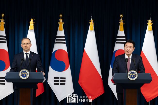 10월 24일 윤석열 대통령은 안제이 두다 폴란드 대통령과 공동언론발표를 했다