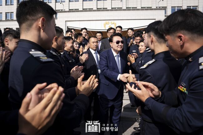 10월 25일 윤석열 대통령은 용산 대통령실에 견학 온 공군사관학교 생도들을 '깜짝 격려' 했다.