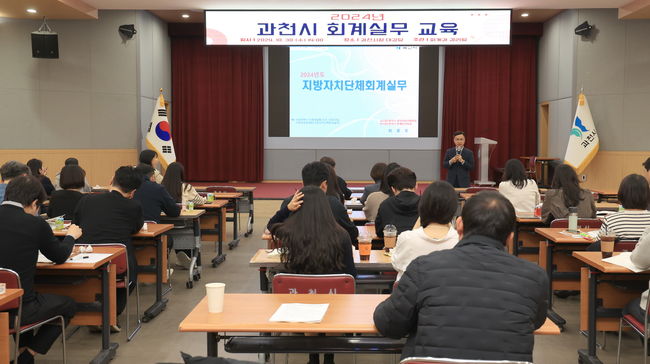과천시는 30일, 시청 대강당에서 공무원과 산하기관 회계 담당자 약 80명을 대상으로 지방 예산의 효율적 집행과 재정 투명성 강화를 위한 회계 실무 교육을 진행했다.