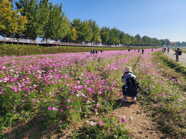 충남 아산 현충사 가는 곡교천 자지러지게 핀 코스모스