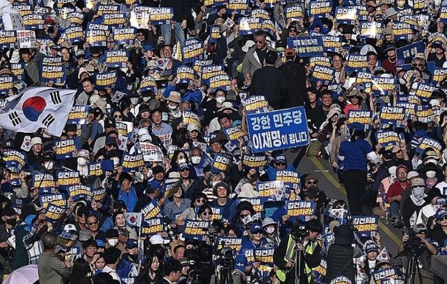 2일 서울 중구 서울역 일대에서 더불어민주당 주최로 김건희 윤석열 국정농단 규탄·특검 촉구 국민행동의날 집회가 열리고 있다