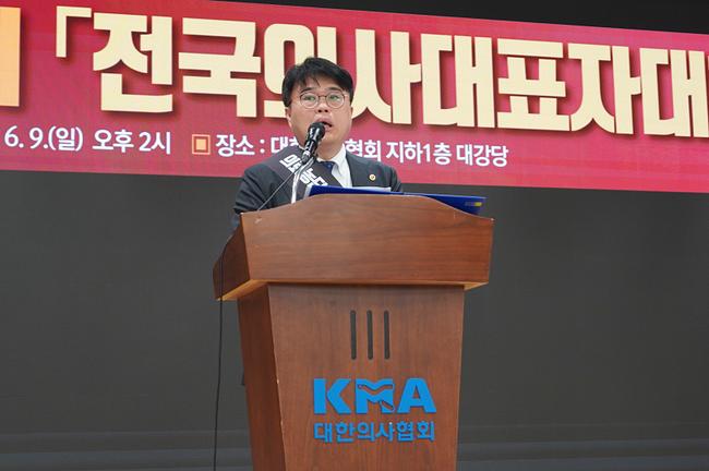 임현택 대한의사협회 회장이 9일 서울 용산구 대한의사협회에서 열린 전국의사대표자대회에서 대회사를 하고 있다. (사진-대한의사협회 제공)