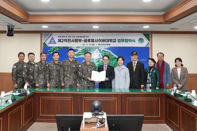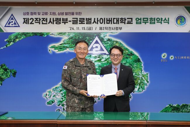 육군2작전사령부(대장 고창준)은 15일 오전 11시 육군2작전사령부에서 사이버기술, 영상교육을 통한 첨단과학화 선진군대로 변화하기 위한 방안으로 글로벌사이버대학교(총장 공병영)과 상호업무협약(MOU)를 체결하였다