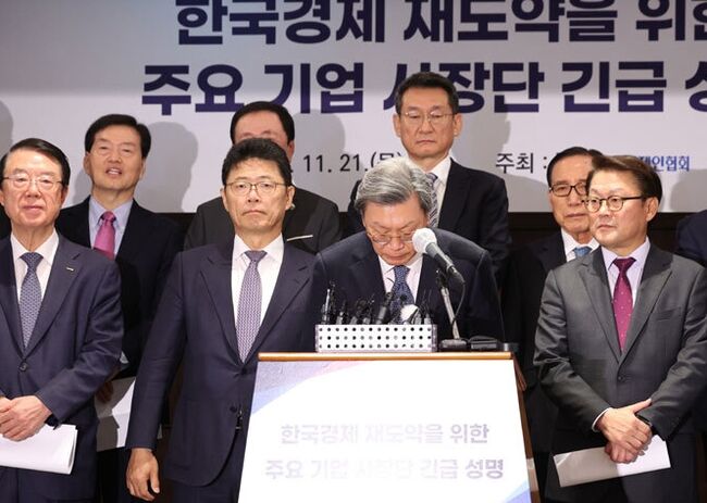 주요기업 16곳 사장단 "규제보다 경제 살리기 입법 힘써달라" '한국경제 재도약 위한 긴급성명'발표