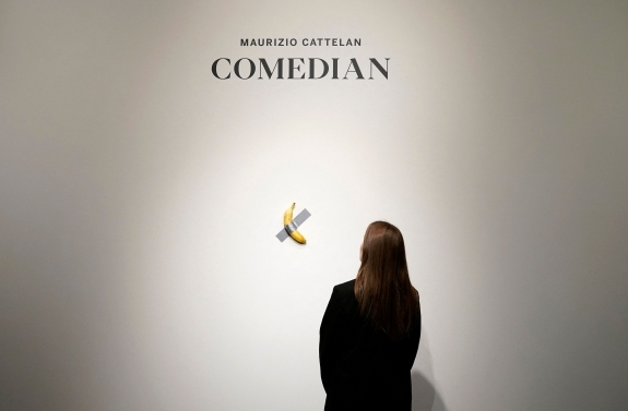 이 '코미디언'의 구매자는 중국 태생의 가상화폐 기업가 저스틴 선으로 확인됐지만 경매된 작품은 굵은 강력 접착테이프를 이용해 벽에 붙여놓은 바나나 한 개가 전부다.