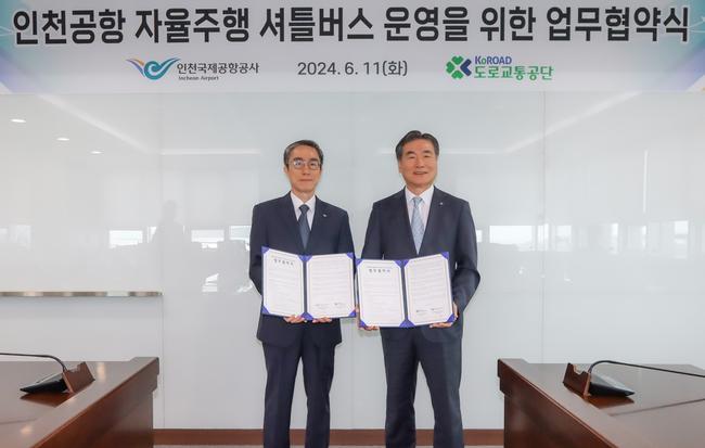 인천국제공항공사는 11일 공사 회의실에서 도로교통공단(이사장 직무대행 서범규)과 `인천공항 자율주행 셔틀버스 운영을 위한 업무 협약`을 체결했다고 밝혔다.