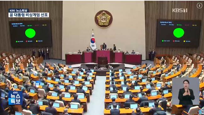 이에 국회는 4일 0시 47분 본회의를 열어 비상계엄 해제 요구 결의안을 상정, 재석 의원 190명 전원의 찬성으로 가결했다.