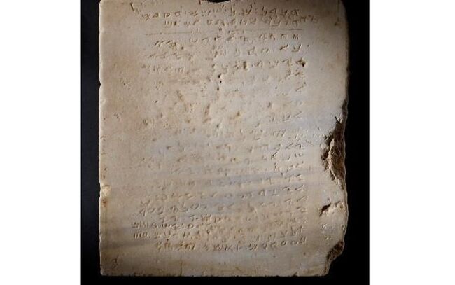 무게 약 52㎏, 높이 약 61㎝인 이 석판은 지난 1913년 현재 이스라엘 남부 해안지역의 철도 건설 현장에 버려진 돌판에 불과했다. 초기 유대교 회당, 모스크, 교회 유적지와 가까운 곳이다.