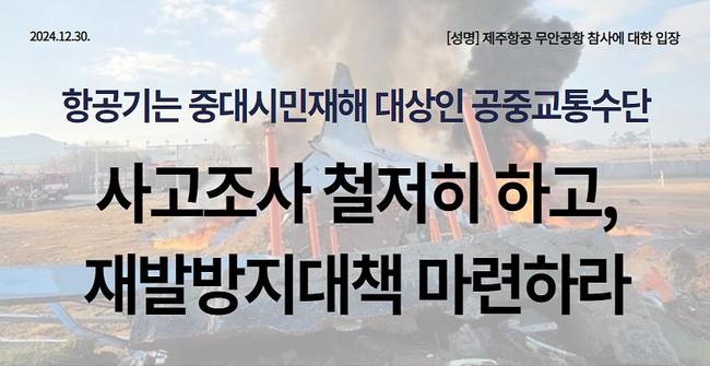 • "시민의 항공 안전 불신 해소 위한 근본 대책 마련 시급"