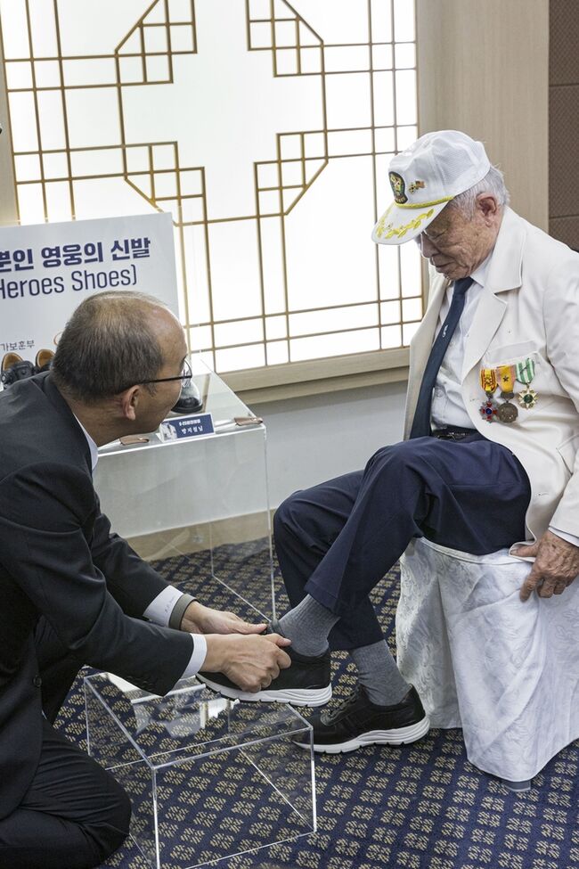 한화에어로스페이스는 정전 70주년을 맞은 지난해 7월부터 맞춤형 신발 제작업체인 선형상사와 함께 전국의 참전용사 174명과 미국, 캐나다, 영국 등 유엔(UN)군 참전용사 79명의 발 모양을 3D 스캐너로 정밀 측정했다. 이후 측정치에 맞춰 총 253켤레의 신발을 제작한 뒤 참전용사들에게 전달했다.