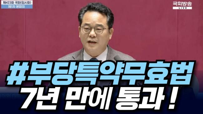 국회 본회의에서 해당 법안 제안 설명에 나선 민병덕 의원은 “수급사업자의 권익 보호를 위해, 부당한 특약은 그 부분에 한정하여 이를 무효로 하되, 일부 부당한 특약은 거래의 안정성을 위하여 당사자 일방에게 현저하게 불공정한 경우에 이를 무효로 하는 등의 내용”이라고 개정안을 설명하며, “부당특약무효법이 통과되면, 부당한 특약에 대해서 2년이 넘게 걸리는 민사소송을 거치지 않아도 됩니다. 우리나라 연간 하도급계약은 7만 6천건이며, 하도급계약 금액은 약 70조원에 달합니다. 5만 6천 하도급업체와 관련 노동자들께 오늘 2025년 3월 13일, 부당특약 무효화 법안이 통과된다고 기쁜 마음으로 말씀 드리고 싶습니다. ”라며, 의원들의 찬성 투표를 요청했다.