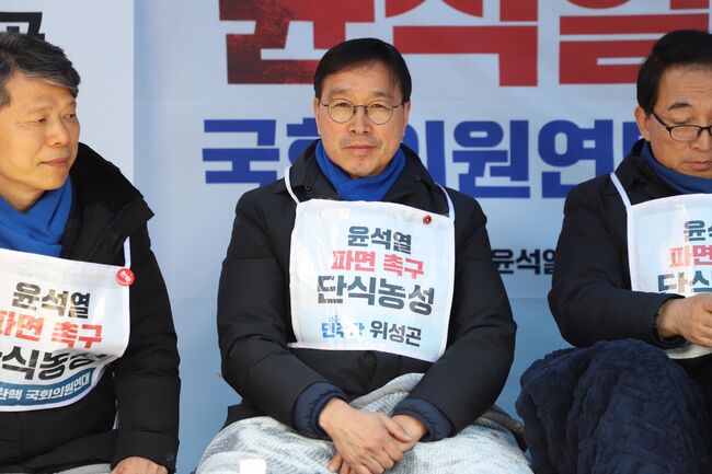 윤석열 파면을 촉구하며 7 일째 광화문에서 단식 농성을 이어가고 있는 더불어민주당 위성곤 ( 제주 서귀포시 ) 의원은 “ 농성 천막을 찾은 많은 시민으로부터 한층 격화된 분노와 절박함을 읽을 수 있었다 ” 며 “ 헌재의 탄핵 선고가 늦어질수록 국민 분열의 상흔은 회복하기 어려운 수준으로 깊어질 것 ” 이라고 우려했다 .