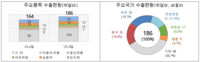 • 수출 186억 달러, 수입 197억 달러… 일평균 수출은 소폭 상승