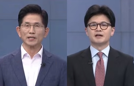 국민의힘 최종 2인 경선에 오른 김문수·한동훈 후보는 30일 토론회에서 최후의 대결을 벌였다. 두 후보는 보수층과 중도층의 표심을 잡기 위한 선명성 부각에 신경을 썼고 사안별로 공감하는 부분도 있었지만 입장차이를 달리한 내용도 있었다.