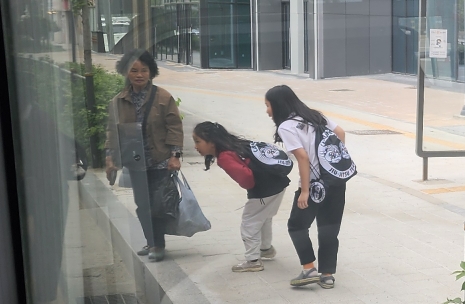 '감사합니다' 버스기사에게 인사하는 두 자매
