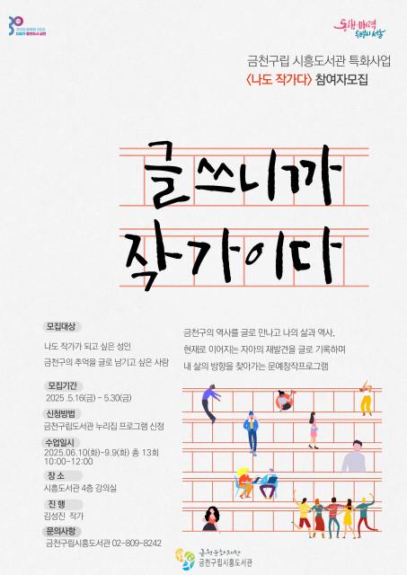 금천구립시흥도서관, 성인 문예창작 프로그램 ‘나도 작가다’ 6월 10일부터 운영