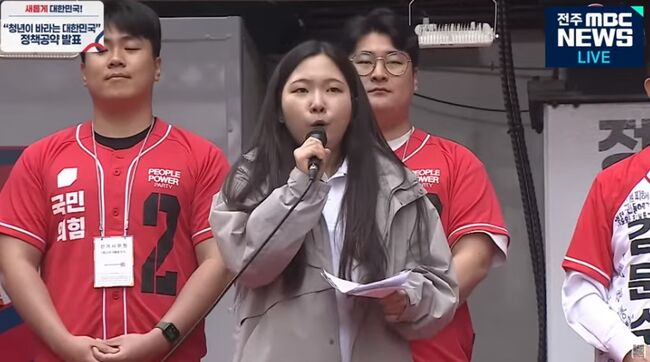 김문수 후보 지지 선언하는 26살 유치원 교사 출신의 한 청년여성