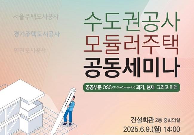 주제 발표로는 ▲ 김진성 SH공사 수석연구원의 `도심지 OSC 기반 주택 표준 모델 개발 방향과 피씨(PC) 설계 가이드라인` ▲ 김도연 GH 공공주택기획부장의 `GH 중·고층 모듈러 실증 사업 현황 및 향후 과제` ▲ 이지은 LH 연구위원의 `국내 OSC 기반 공공주택 공급 성과와 소규모 주택 적용 가능성` 등이 진행될 예정이다.