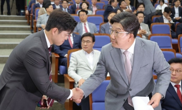 김 위원장은 “민주주의의 길에 지도부가 역행할 필요는 없다, 국회의원과 원외 당협위원장 연석회의를 절차에 따라 검토하겠다”며 비판했다. 국민의힘 당헌상 소속 의원 10분의1 이상(11명 이상)이 요구하면 의총을 열게 돼 있다.